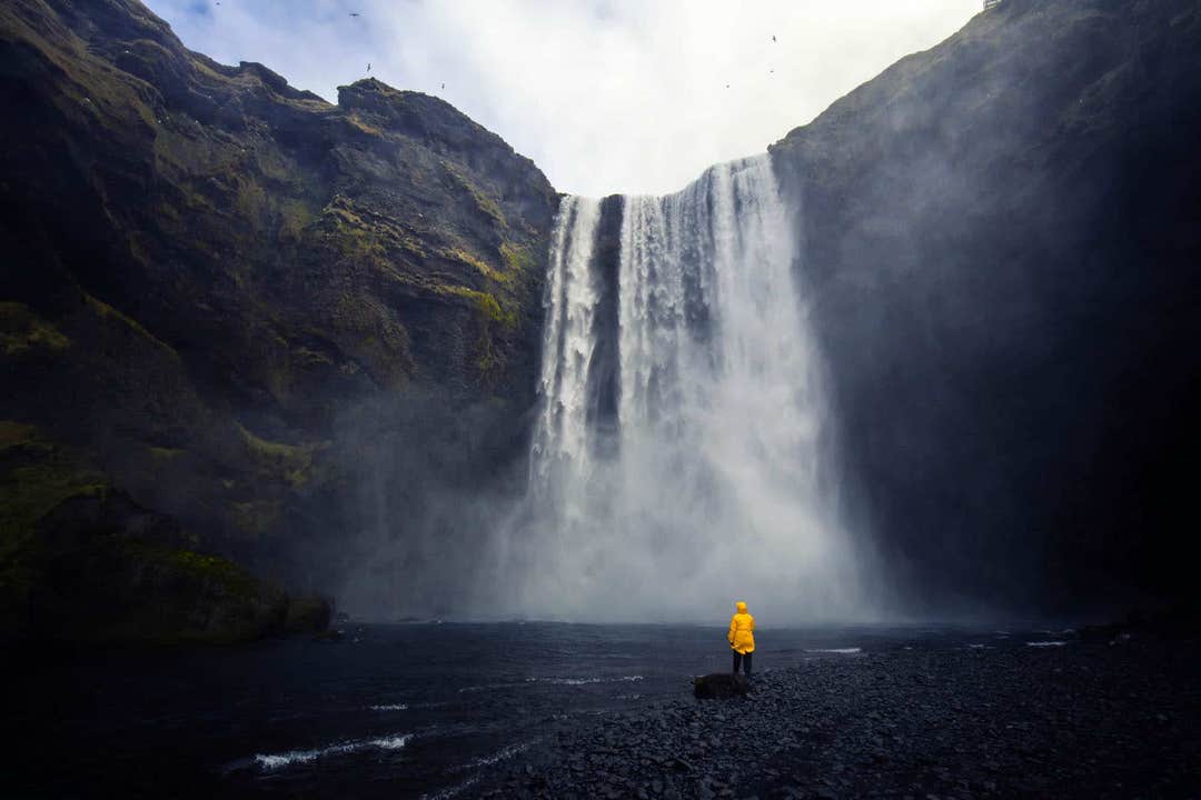 After this, it's time to head to another famous Iceland waterfall. Skogafoss flows directly from two glaciers, Eyjafjallajokull and Myrdalsjokull, with great power, and on sunny days the spray can produce beautiful double rainbows.