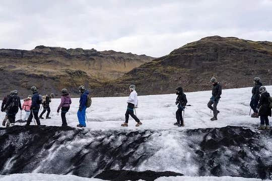 The highlight of your day tour awaits at Solheimajokull glacier, 103 miles (166 kilometers) from Reykjavik. Atop this breathtaking outlet glacier of Myrdalsjokull, your group will have an exhilarating glacier hike.