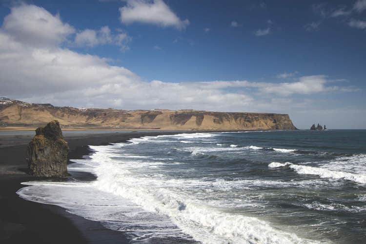 After snapping a few photos, you'll continue along the South Coast toward the Dyrholaey Peninsula. Here, you'll witness the mesmerizing meeting of land and sea, with panoramic views of black beaches, rugged cliffs, and the Atlantic Ocean.