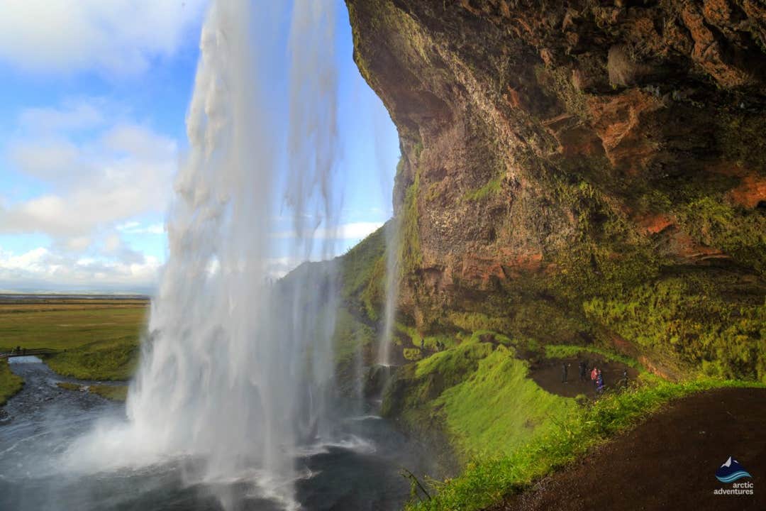 Although not quite as powerful, the nearby Seljalandsfoss waterfall is pristine and unique. It features a walking path that offers picture-perfect photo opportunities behind the falls. Make sure you wear your waterproof gear and good walking shoes on this trail!