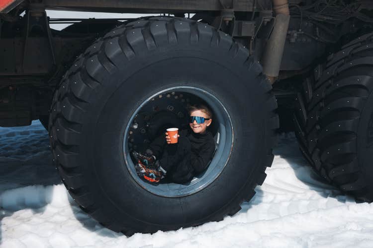 Ride in comfort and style in a monster truck, a specially designed glacier vehicle equipped to handle the icy terrain while offering a smooth, elevated view of the landscape. Its large tires and advanced suspension make the journey both safe and surprisingly gentle, even across rugged glacier surfaces.