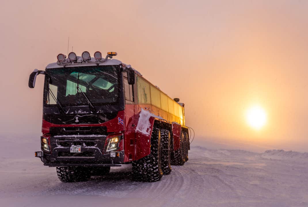 Experience the magic of the midnight sun in Iceland on this 4-hour tour of Langjokull Glacier aboard a monster truck. This is the perfect tour for those who want to witness the summer solstice from the top of a glacier while riding in a powerful and comfortable vehicle.