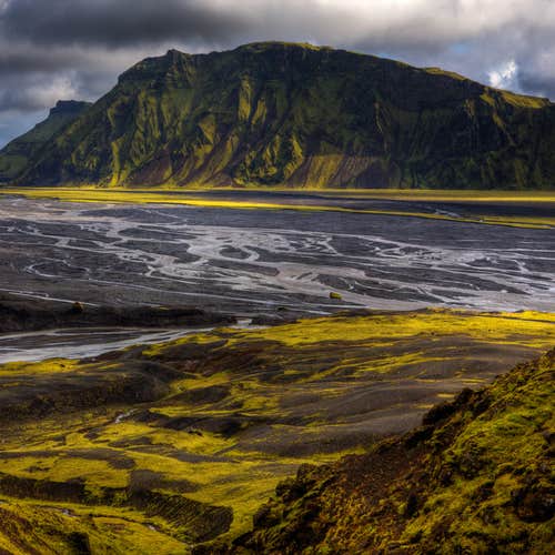 The drive to this scenic canyon takes you through volcanic deserts, grassy plains, and steep cliffs shaped by past eruptions. It’s a dramatic route through one of South Iceland’s most remote and varied landscapes.