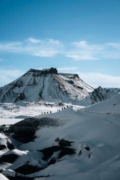 After finishing the ice caves, if daylight allows, your group will stop at some of the country’s most majestic waterfalls on the ride back to Reykjavik. This includes Skogafoss, which measures 82 feet (25 meters) wide with a drop of about 200 feet (60 meters). A legend about this waterfall says a chest filled with gold and treasures can be found behind it.