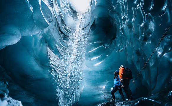 Along the way, you’ll witness natural ice formations and the beautiful interplay of ash and blue glacial ice.