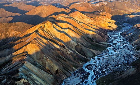 Thorsmork is a wide valley, named after the Viking god of thunder and fertility, Þór. This gorgeous nature reserve is a lush realm of forest and flowers, where the icy river Krossa winds between jagged mountains. Looming over the valley are three glaciers that shelter the valley from the region’s fierce weather.