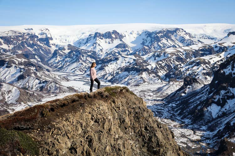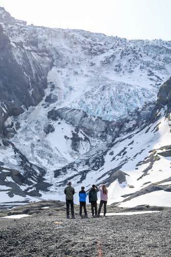 After lunch, it's time for another hike. You'll walk for about two hours, ascending the Valahnukur mountain, where you'll find one of the best views in the country. From the top, you'll see glaciers, mountains, and valleys. Your photographer will be on hand to snap photos of you in this magnificent place.