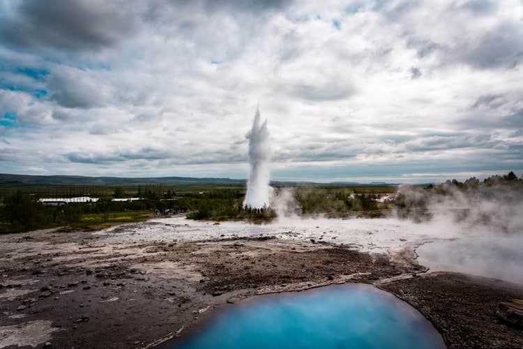 After you enjoy the beauty of Gullfoss waterfall, the guide will take you to the Geysir geothermal area. Located in the Haukadalur Valley, the area is famous for being the home of two important geysers: the Great Geysir and Strokkur.