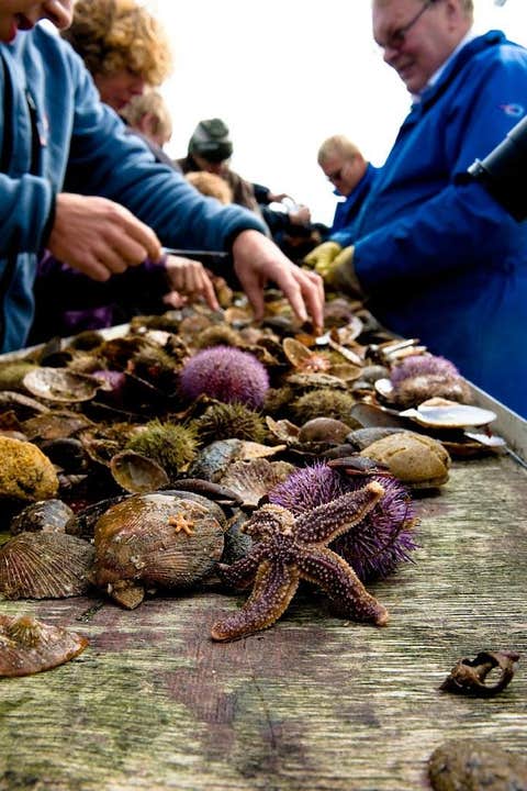 The cruise crew will empty a fresh catch of a special shellfish dredge right on deck for your viewing pleasure. Prepare to feast your eyes on various delectable seafood, including scallops, sea urchins, crabs, starfish, sea cucumbers, and more.