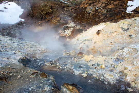 Next, your guide will take you to the Gunnuhver hot spring. Here, an impressive steam cloud billows from the earth, and you can see the remains of an old settlement. Ensure your camera is ready to capture some excellent shots from the boardwalk.