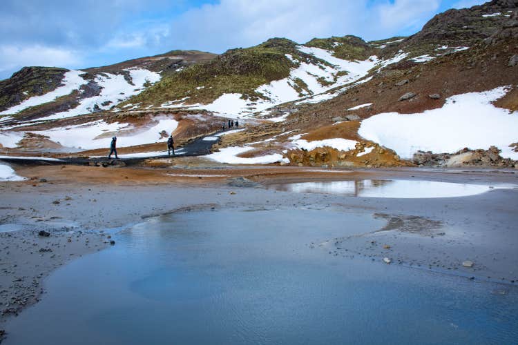 You’ll know you’ve arrived when you smell the strong sulfur and see gases rising through the air, characteristic features of geothermal areas such as these. Together with the colorful hills and surrounding landscape, it’s a feast for the senses.
