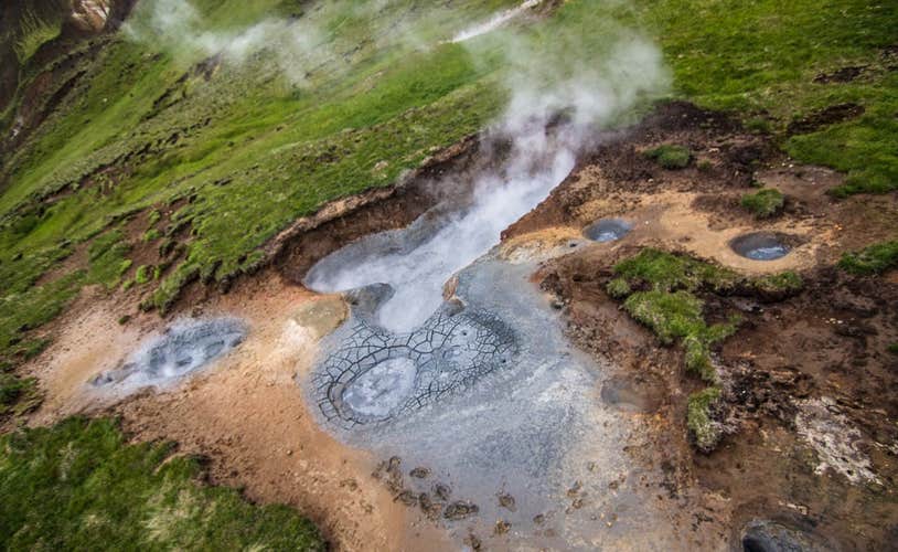 At 198 metres tall, tumbling in a narrow cascade, Glymur is a beautiful feature. From your vantage point in the sky, you will truly be able to appreciate its scale, as well as its wealth of surrounding flora.