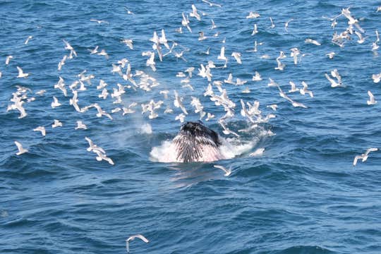 Common sightings include minke and humpback whales, white-beaked dolphins, and harbor porpoises. Relax in the cozy indoor saloon, where snacks and refreshments are available to purchase, or enjoy the sea breeze from the viewing platforms. Experienced guides will share fascinating insights about each species, creating an educational and memorable experience.