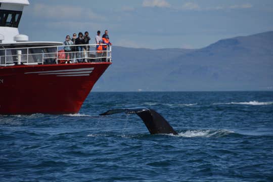 Your tour begins with a thrilling three-hour whale watching excursion from Reykjavik's Old Harbor. You'll meet your expert guide and the rest of the group here before boarding a spacious boat.