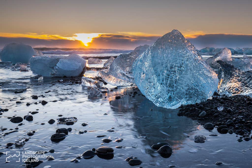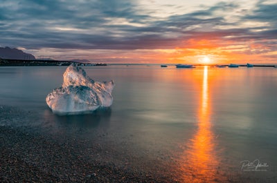 The photography locations on the South coast of Iceland start with a few waterfalls, Seljalandsfoss, Skógafoss and Kvernufoss, and from there visiting Dyrhólaey peninsula with a great view to Reynisdrangar sea stacks and Reynisfjara black sand beach. From the small village of Vík we head east, exploring many well-known locations like Hjörleifshöfði, Eldhraun, Fjaðrárgljúfur, Lómagnúpur and Jökulsárlón glacier lagoon. Jökulsárlón is known by most photographers in the world for its unique icebergs floating on the big glacier lagoon and the icebergs washing up on the beach in front of the lagoon. Vestrahorn mountain at Stokksnes and Eystrahorn mountain are among the iconic mountains in Iceland, great photo opportunities any day of the year. A part of this workshop is an early morning visit with a local glacier guide to the Ice-caves in Breiðamerkurjökull glacier which are unique to photograph.