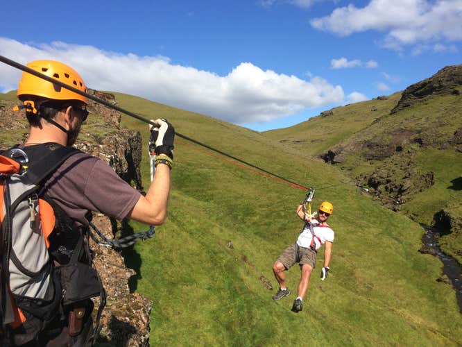 This zipline experience is a fantastic, family-friendly activity for thrill-seeking travelers to Iceland. Children aged eight and up are welcome to join, although all participants must be able to hike around one to two miles (three kilometers) over uneven surfaces.
