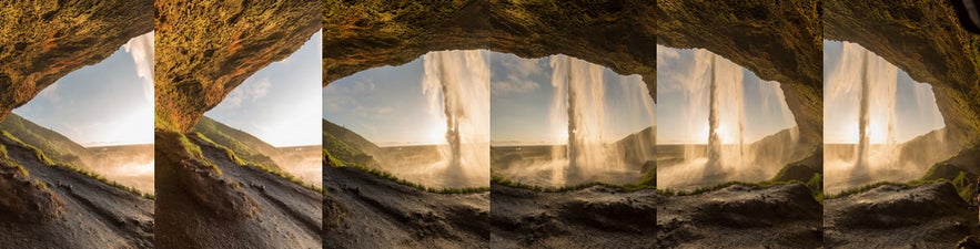 The main attraction of Seljalandsfoss is definitely to take the walk behind the waterfall. You must prepare yourself to get wet since there’s a lot of water vapour in the air. For the same reason it’s extremely important that your camera-gear is weather resistant! I can’t emphasize that enough. My 5D mark III with the 16-35mm f/4 lens was literally dripping of water when I made my shot of the sun behind the waterfall.