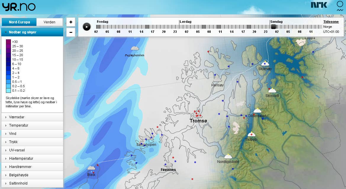 For those who might want to try out your luck in mainland Scandinavia, the website to watch for is the Norwegian meteorological office, the glorious Yr.no !