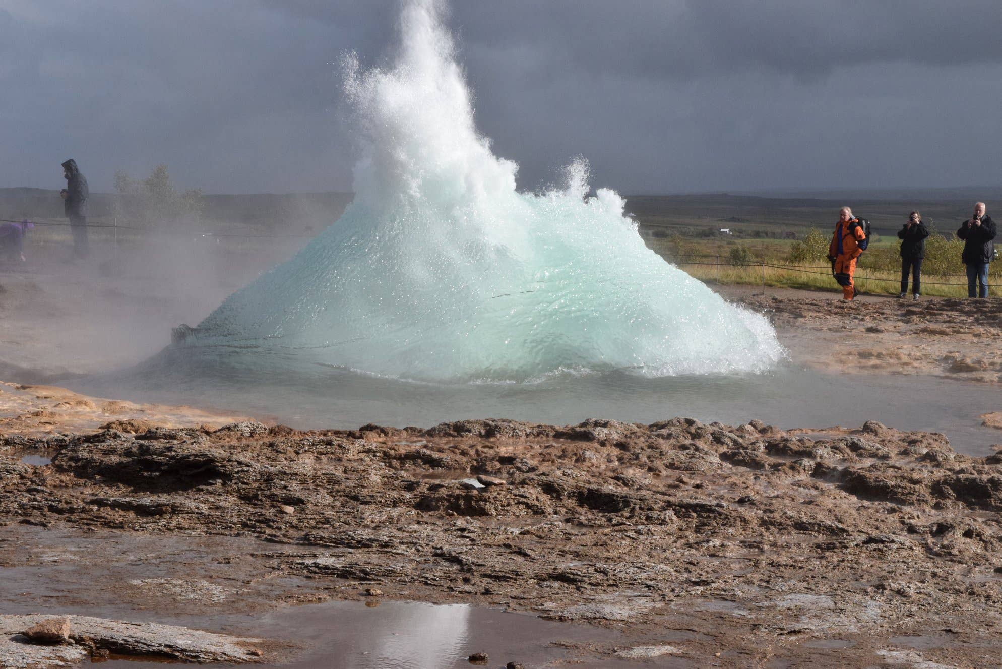 ストロックル間欠泉の良いところは、定期的に噴き上げてくれるので一度見逃しても数分後にまた見られるところ。