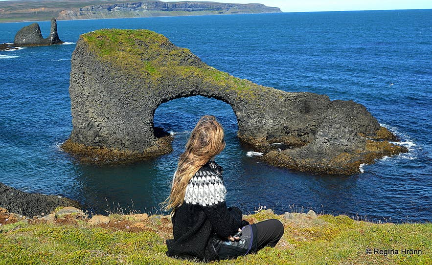 In one part of Rauðanes, there is a unique rock formation called Gluggur, or Peekhole. It is a huge hole, as you can see in my photo below.