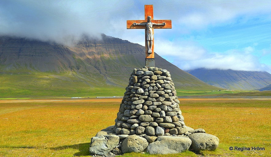 The large Holy Rood (róðukross) is a memorial for Brandur and the Clan of Ásbirningar. This place is called Róðugrund, as, after the killing of Brandur, a rood was erected.