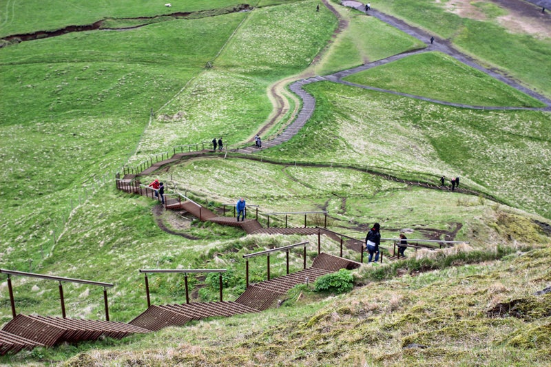 여행 5일째, 포스톤즈가 처음으로 향한 곳은 아이슬란드 남부에 있는 스코가포스 폭포(skogasfoss)입니다. 아이슬란드 남부의 대표적인 폭포 중 하나에요. 방송에서는 들르지 않았지만 스코가포스 거의 바로 옆에 위치한 셀리야란드스포스(seljalandsfoss) 폭포와 함께 같이 들르곤 한답니다. 스코가포스 폭포는 폭포의 물줄기 끝까지 올라갈 수 있단 게 장점이구요. 셀리야란드스포스 폭포는 떨어지는 물줄기 뒤로 지나갈 수 있답니다. 스코가포스 폭포는 계단을 통해서 올라갈 수 있는데요. 생각보다 높고 힘들고, 게다가 올라갈수록 바람까지 엄청나게 거세져서 저도 중간에 포기할까 생각했었지만, 올라가서 보이는 광경은 그만큼의 가치가 있었어요! 혹시 스코가포스 폭포를 방문하시게 되면 주저 말고 올라가시라고 말씀드리고 싶네요.