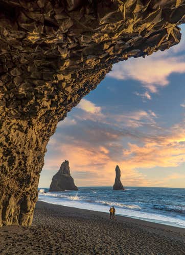 Efter at have besøgt de to vandgiganter i syd kører du til Reynisfjara, en sort sandstrand nær den lille by Vík. Denne strand er berømt for sit livlige fugleliv og stemningsfulde naturlige omgivelser. Der kan du sandsynligvis se flokke af søpapegøjer på jagt efter føde omkring de pyramideformede basaltsøjler, der udgør Reynisfjaras klipper.