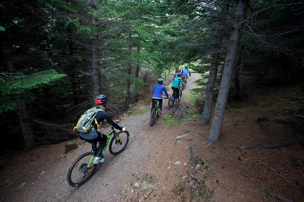 Du fortsætter gennem skoven, cykler gennem træerne og passerer gennem en dal mod den sidste lavinebarriere på dagens rute. Du bestiger en kort, stejl skråning op til muren og får en af områdets bedste udsigter, før du kører tilbage til byen - det er en let sidste strækning, når du vender tilbage til mødestedet.