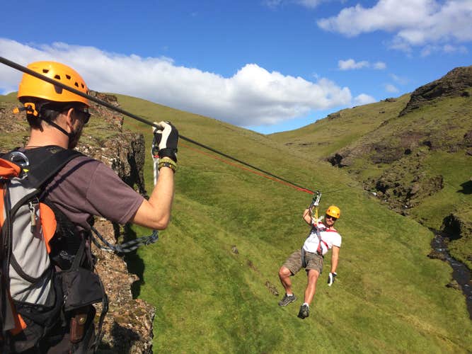 Denne zipline-oplevelse er en fantastisk, familievenlig aktivitet for spændingssøgende rejsende til Island. Børn fra otte år og opefter er velkomne, men alle deltagere skal være i stand til at vandre omkring tre kilometer på ujævnt underlag.