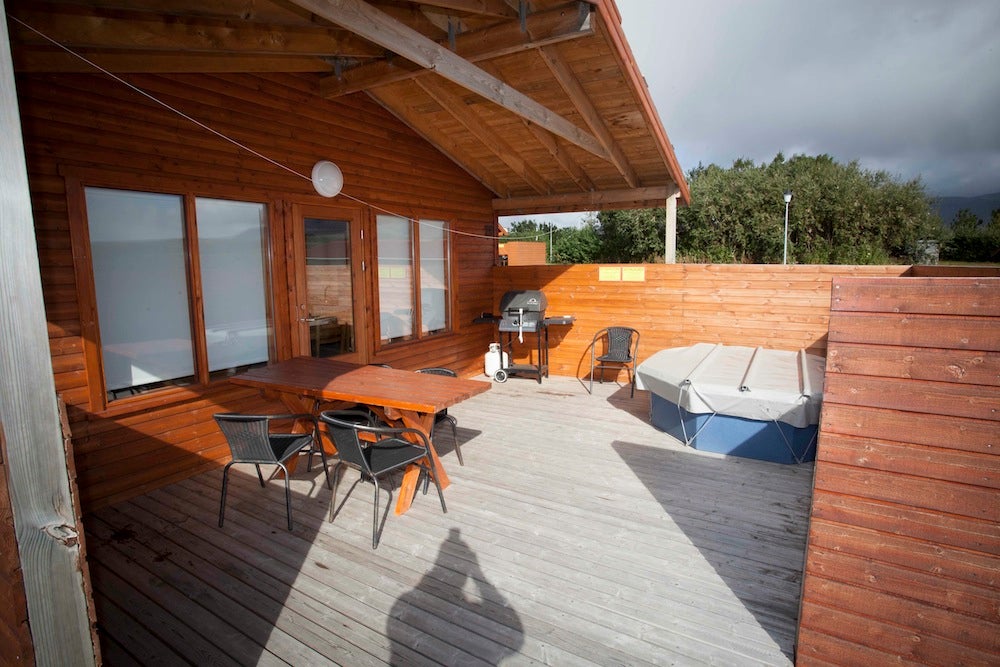Udenfor kan gæsterne slappe af i et spabad på verandaen og bruge gasgrillen gratis, mens de nyder de fredfyldte omgivelser.