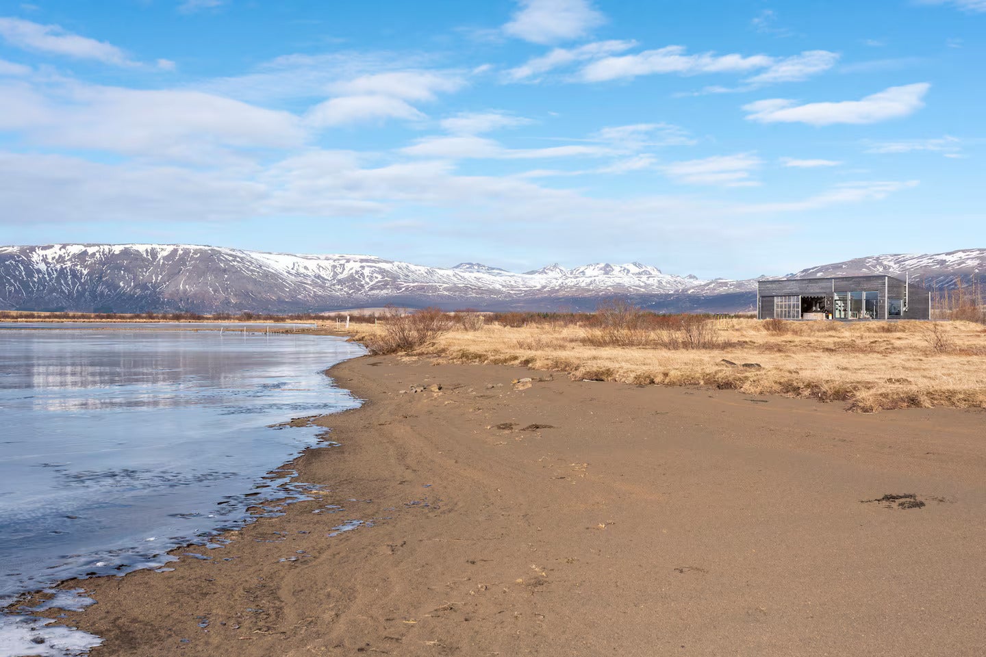 Die Austurey Lakefront Villa liegt inmitten unberührter Natur im Südwesten Islands, direkt am Ufer des Sees Apavatn. Die ruhige Lage auf dem Land ermöglicht es dir, die heimische Vogelwelt zu beobachten, Forellen zu angeln und Schafe in der Ferne grasen zu sehen.