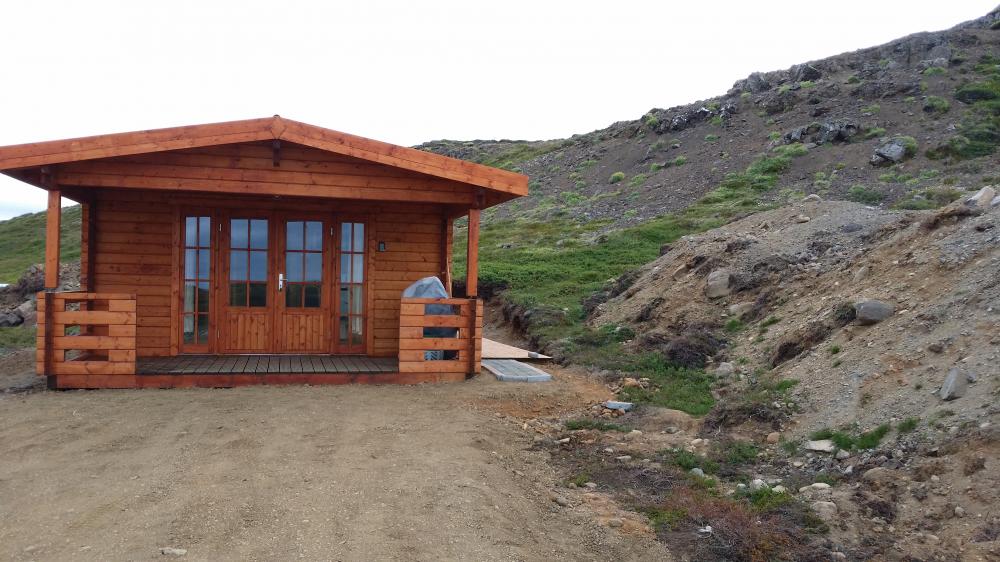 Wählen Sie dieses gemütliche Holzhaus mit Veranda, Kochnische, Bad, WLAN und Platz für fünf Personen in der Nähe von Stykkisholmur in Westisland.