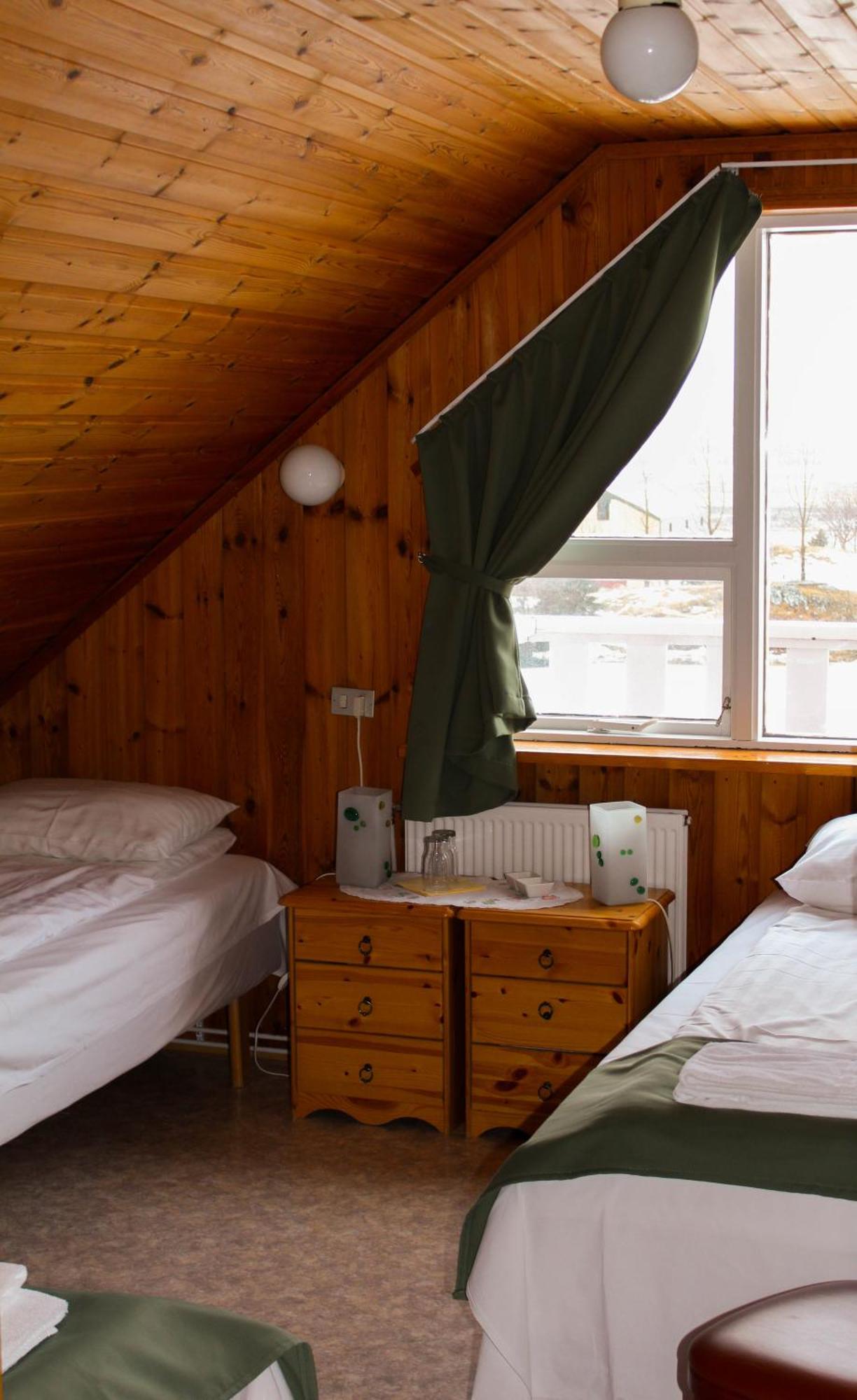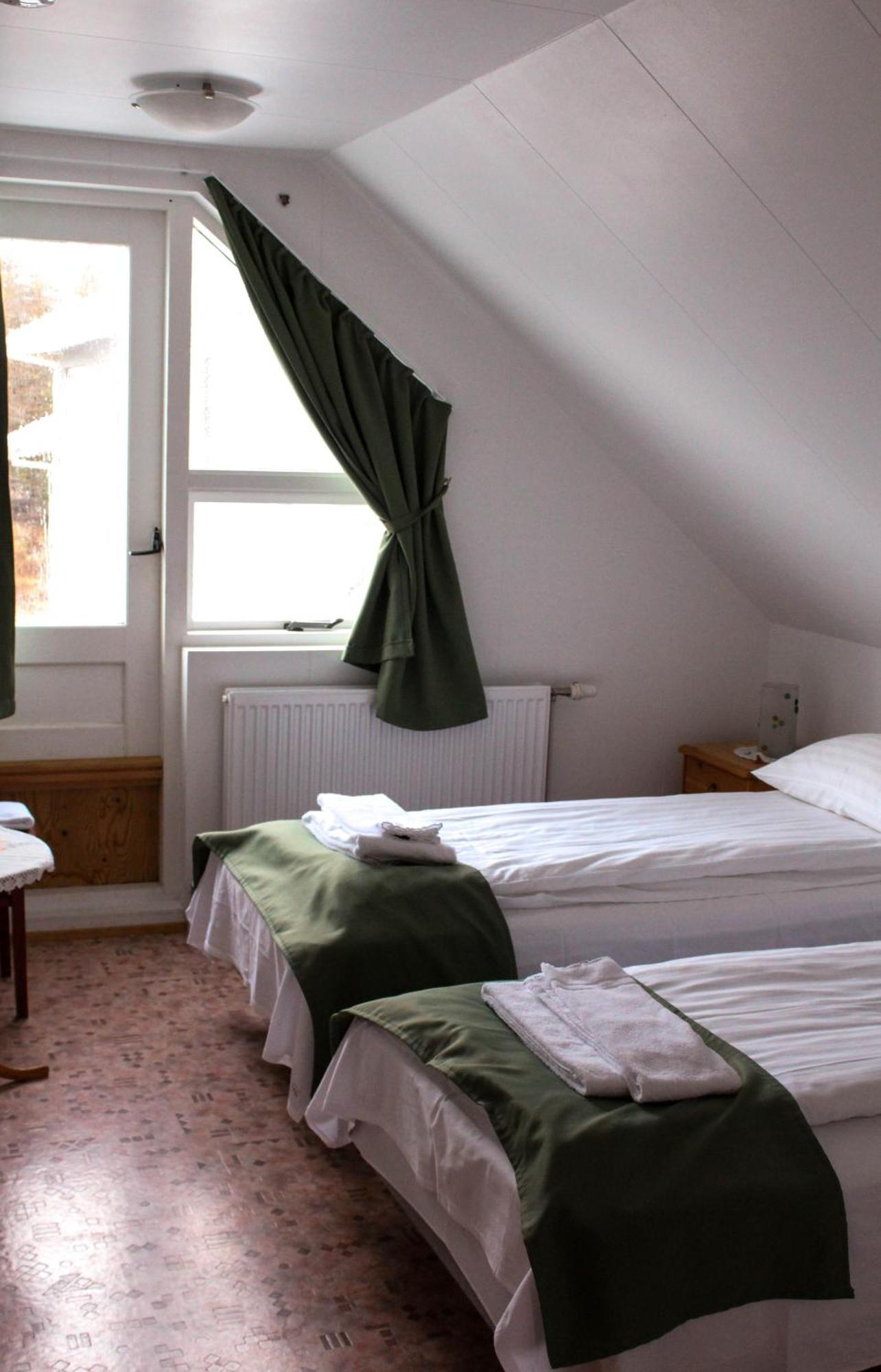 Das Hotel Eyvindara bietet seinen Gästen drei Unterkunftsmöglichkeiten. Im Haupthotel stehen Zweibett- oder Doppelzimmer zur Verfügung, die mit luxuriöser Bettwäsche und eigenem Bad mit Dusche ausgestattet sind. Alternativ können Sie ein geräumigeres Nebenzimmer buchen, das über eine Terrasse und einen Sitzbereich verfügt. Der Stil dieser Zimmer ist modern und hell.
