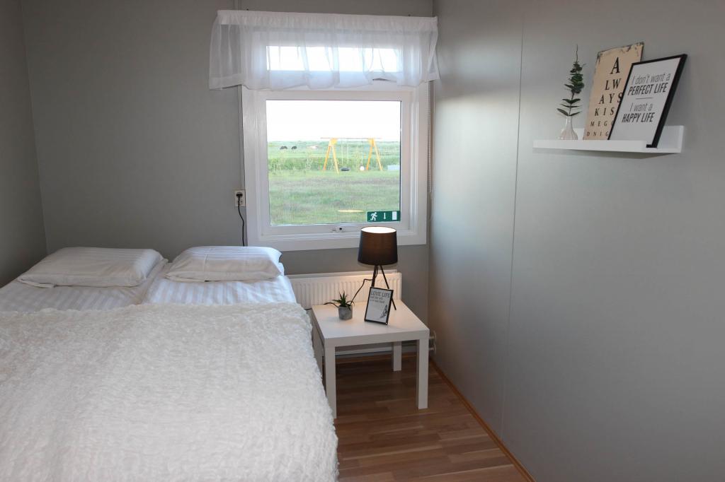 Das Katla Apartment ist eine familienfreundliche Unterkunft mit zwei Schlafzimmern, einem Badezimmer und einem offenen Wohnbereich. Das Hauptschlafzimmer verfügt über ein Queensize-Bett und ein Einzelbett, während das zweite Zimmer über ein Queensize-Bett verfügt.