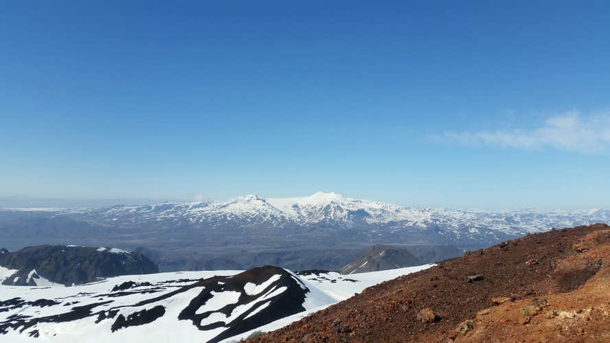 Nachdem du deine Schuhe geschnürt und die Wanderstöcke eingestellt hast, wanderst du ca. 1 bis 1,5 Stunden zu den Calderen, Mt. Magni und Mt. Modi. Diese beiden Krater entstanden bei einem Ausbruch am Fimmvorduhals im Jahr 2010, der vom 20. März bis zum 13. April dauerte.