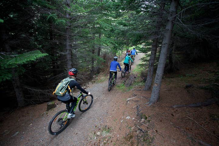 Weiter geht es durch den Wald, zwischen Bäumen hindurch und durch ein Tal bis zur letzten Lawinenbarriere auf der heutigen Route. Es folgt ein kurzer, steiler Anstieg zum Wall, von wo aus man eine der schönsten Aussichten der Region genießen kann. Danach fährst du zurück in die Stadt – es ist eine leichte letzte Etappe, bevor du wieder am Treffpunkt ankommst.