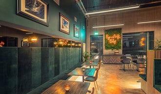Monkeys Food & Wine ist ein trendiges Restaurant mit farbenfrohem Interieur, das Gerichte aus der japanischen und peruanischen Küche anbietet.