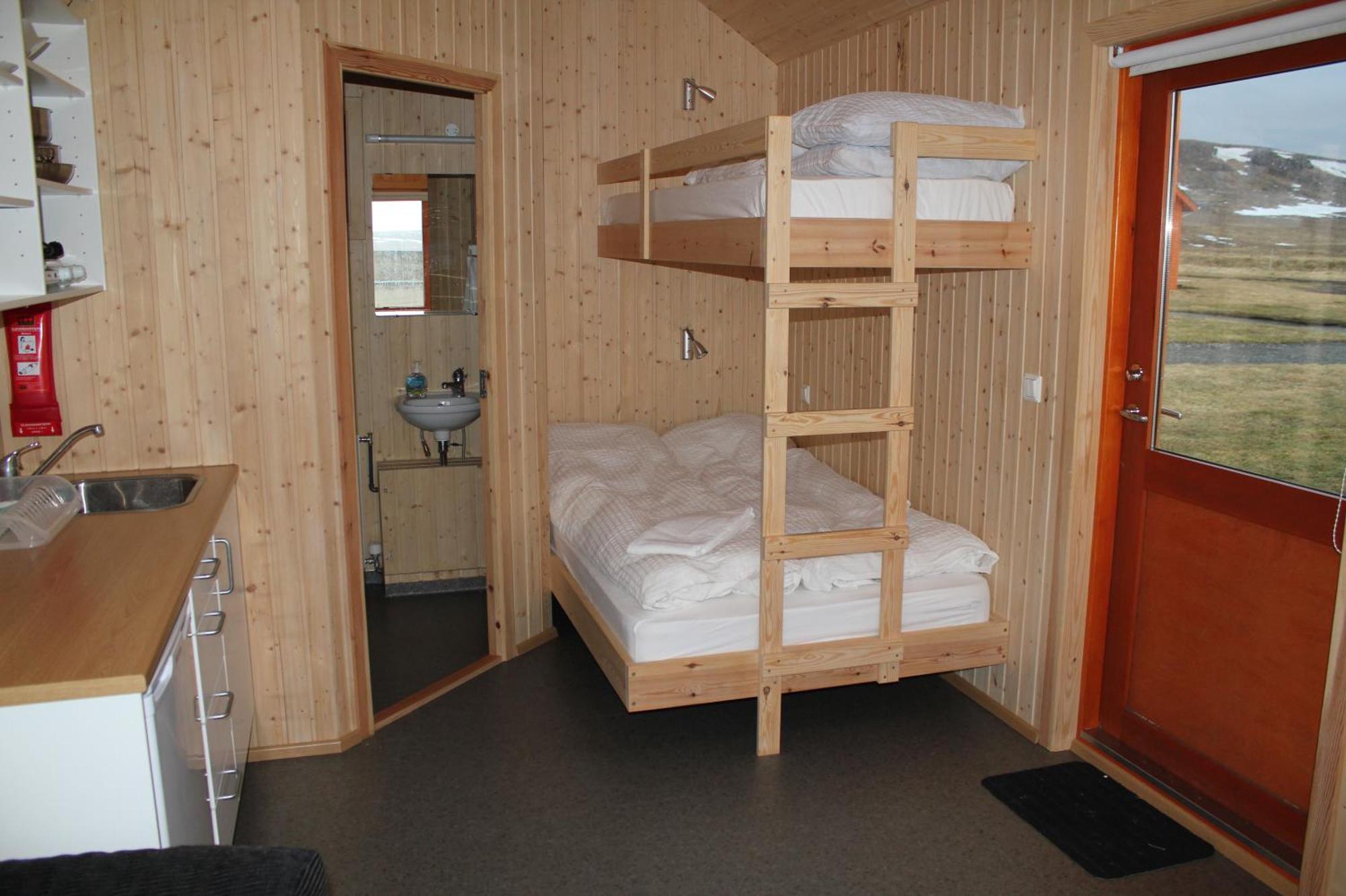 Cada una de las Hvammstangi Cottages tiene alrededor de 20 metros cuadrados y su diseño es absolutamente hermoso, con el estilo de la cabaña de troncos perfecta y enclavada sin problemas en la naturaleza. Hasta cuatro pueden dormir en una litera grande y un cómodo sofá cama. Cada cabaña tiene una pequeña cocina, un televisor de pantalla plana, un baño privado con ducha, acceso Wifi y vistas impresionantes.