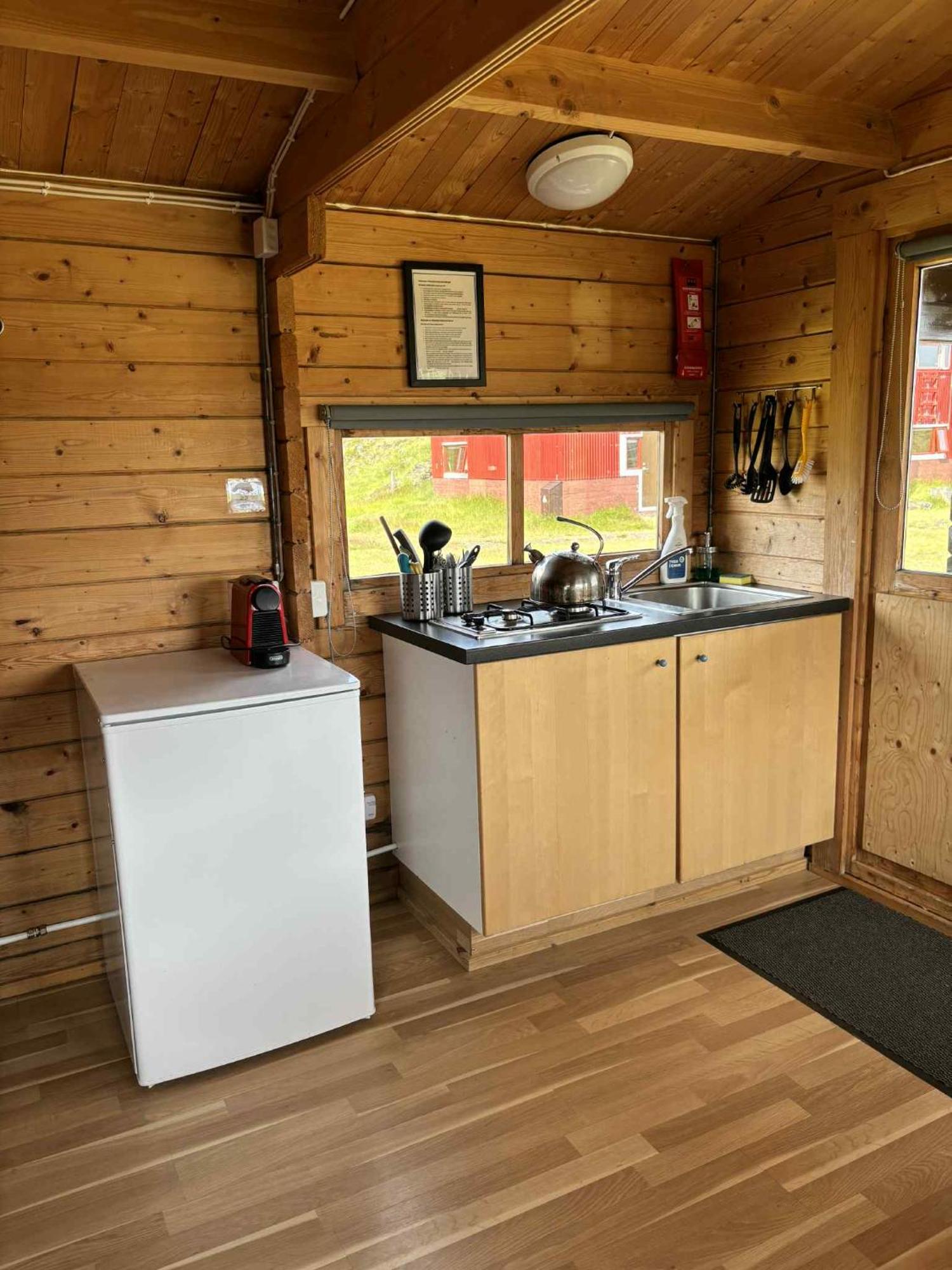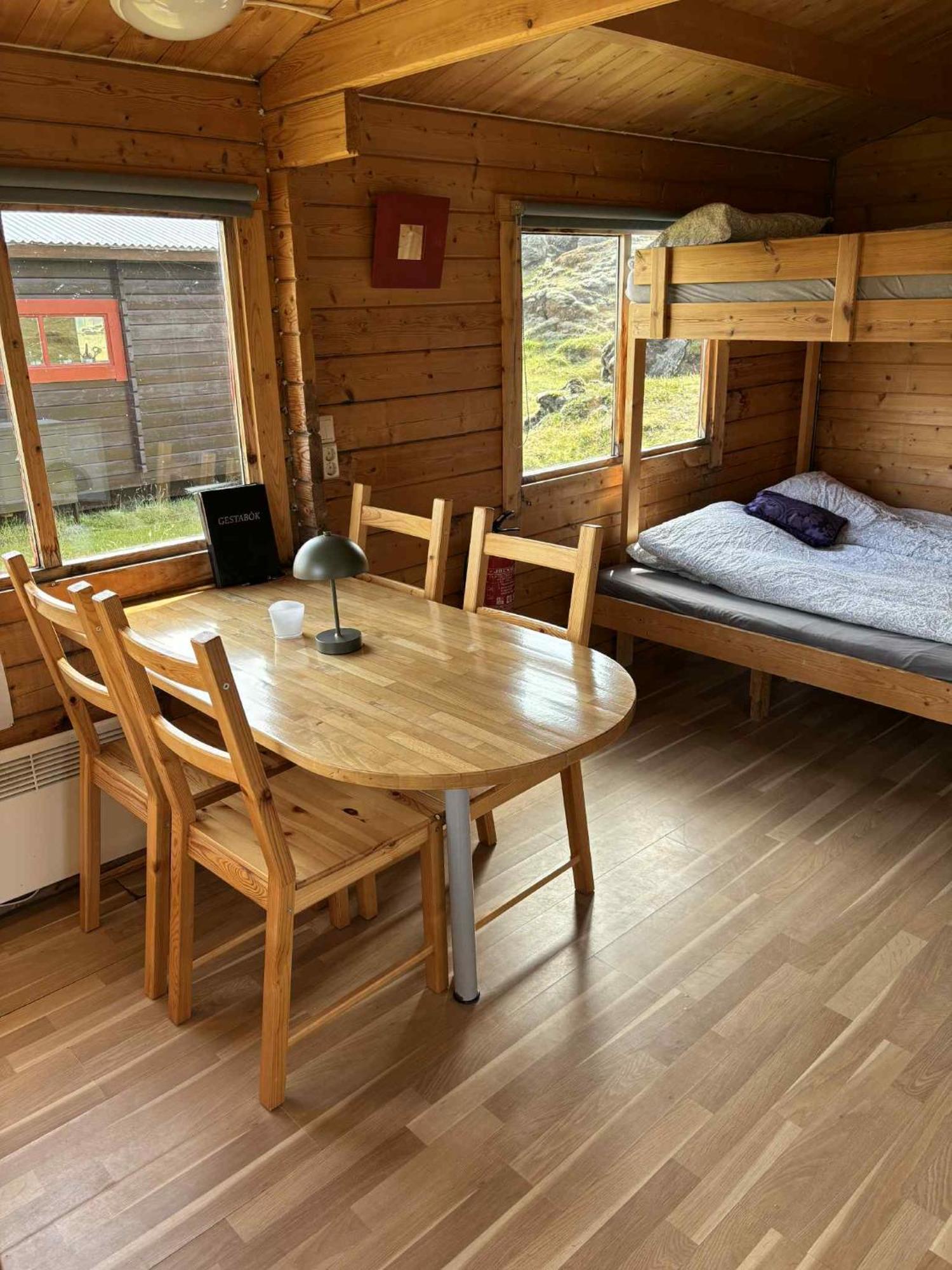 Hay cuatro cabañas en el Holaskjol Highland Center, tres de las cuales pueden acomodar a cuatro personas en sacos de dormir y una puede acomodar a seis.