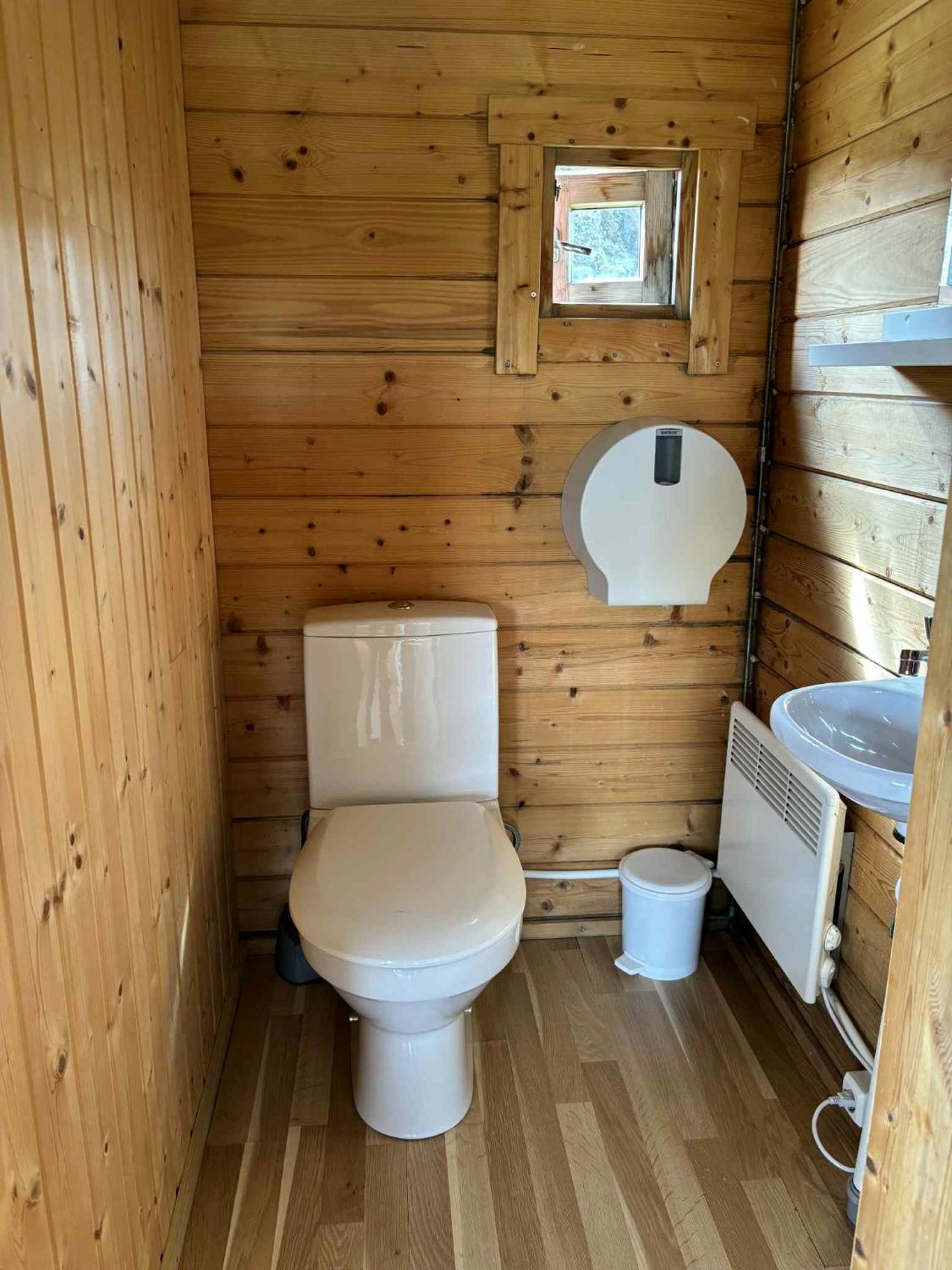 Las cabañas para cuatro personas están cerca del centro y tienen hermosas vistas rurales, cocinas privadas y baños privados, aunque las duchas están ubicadas en otro edificio.
