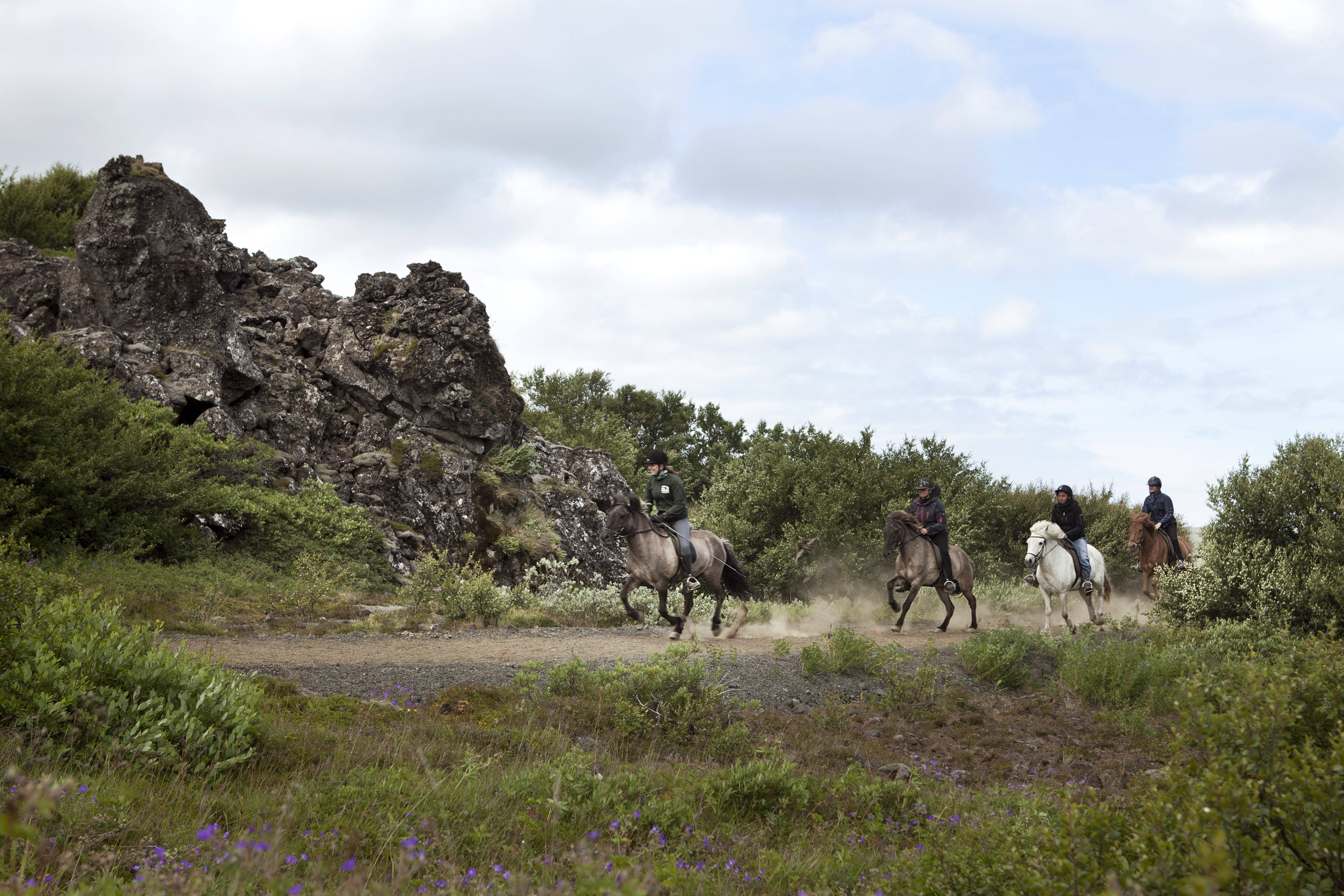 Of course, you’re not going to try something called ‘flying pace’ on a horse riding tour with beginners! But on tours like these, those who feel comfortable are welcome to try out ‘tölt’ or at least try to try out ‘tölt’ because horses are not like cars, you can’t just put it in gear and the horse will be tölt-ing.