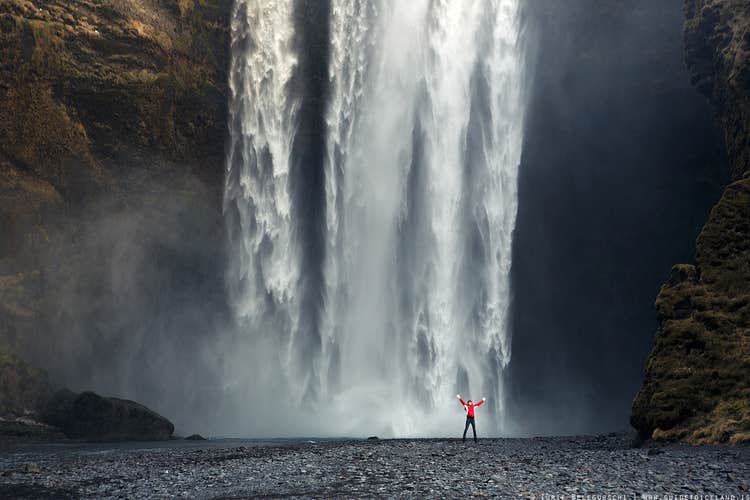 La siguiente cascada, Skogafoss, es una de las más grandes del país, con una anchura de 25 metros y una caída de 60 metros.
