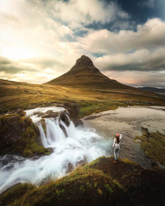 Continuarás este día de épicas aventuras viajando a la montaña Kirkjufell y su cascada, sin duda uno de los paisajes más mágicos de todo el país. Este pico salió en la serie Juego de Tronos y a menudo recibe comparaciones de una iglesia, pirámide y punta de flecha.