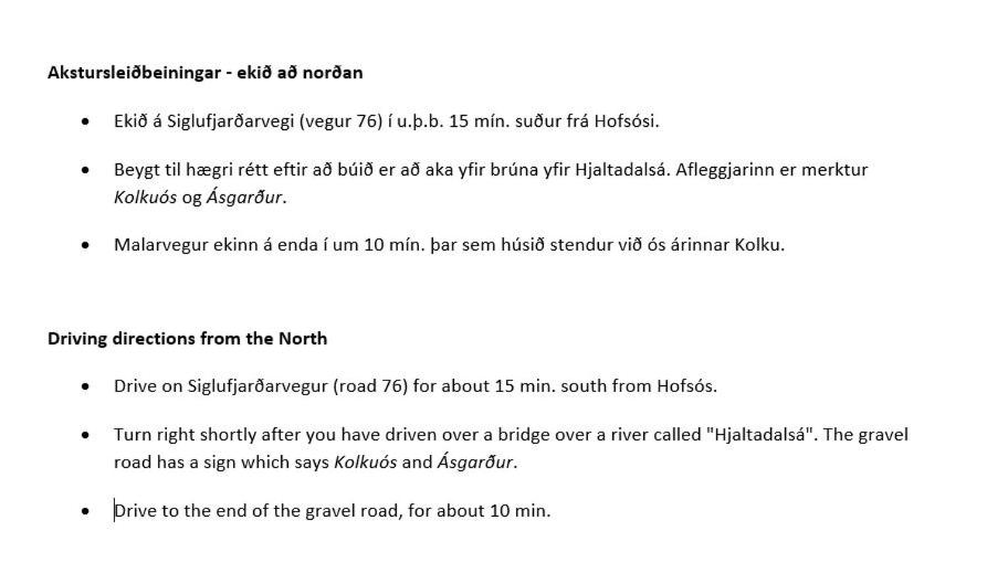Kolkuos Guesthouse sopii erityisen hyvin matkailijoille, jotka kaipaavat aitoa islantilaista tunnelmaa ja vertaansa vailla olevia maisemia. Pohjois-Islannin kylät ja luonnonihmeet ovat helposti tavoitettavissa, ja majatalon rauha tarjoaa virkistävän hengähdyksen arjen kiireiden keskellä.
