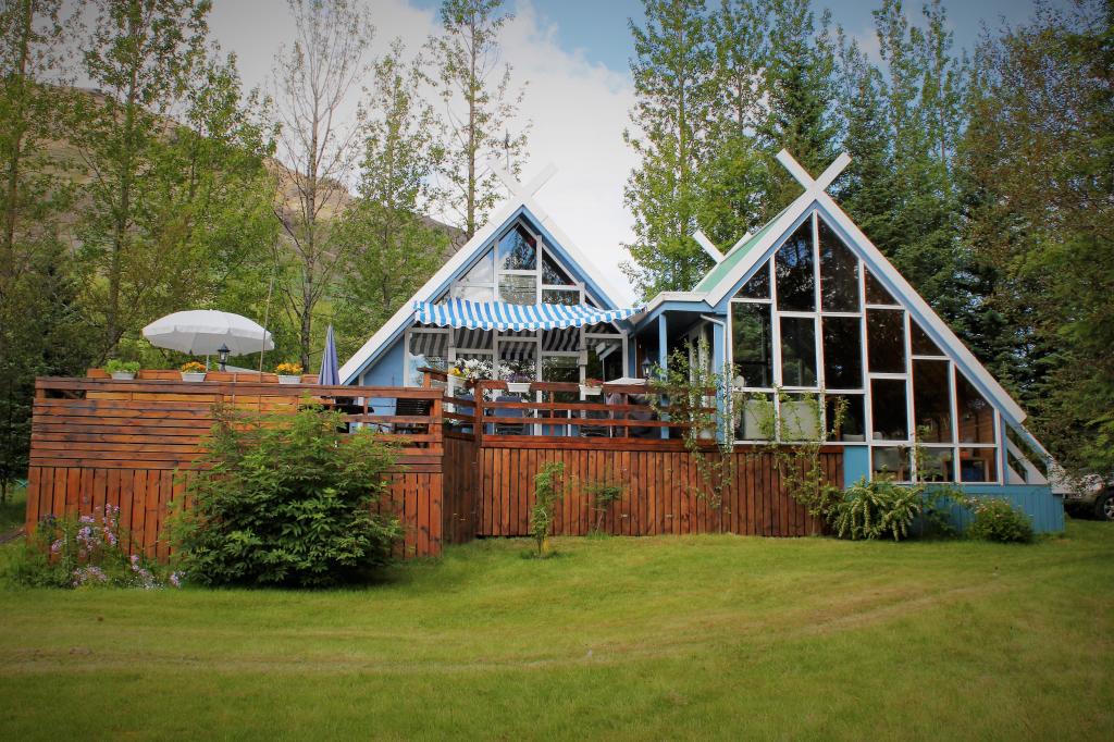 Puiden ympäröimä koti tarjoaa poikkeuksellisen suojan kuuluisaa Islannin tuulta vastaan ja tarjoaa vieraille mahdollisuuden nauttia yksityisistä ulkoilupalveluista, kuten ulkosuihkusta, jalkapallomaalista, leikkimökistä ja parvekkeelta, jossa on poreallas.