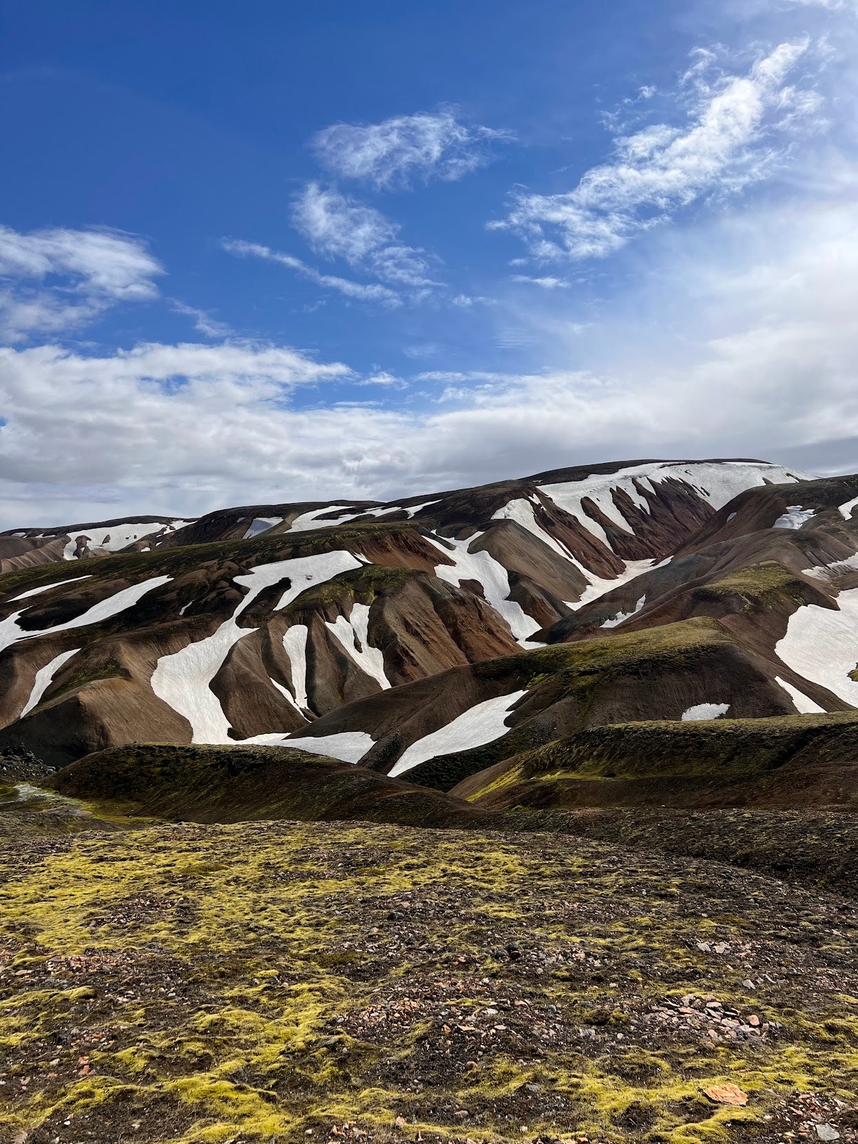 Ensimmäisenä päivänä patikoit Fjallabakin ja Landmannalaugarin luonnonsuojelualueella Islannin ylängöillä. Landmannalaugar tunnetaan syrjäisestä sijainnistaan ja vaikuttavista maisemistaan.