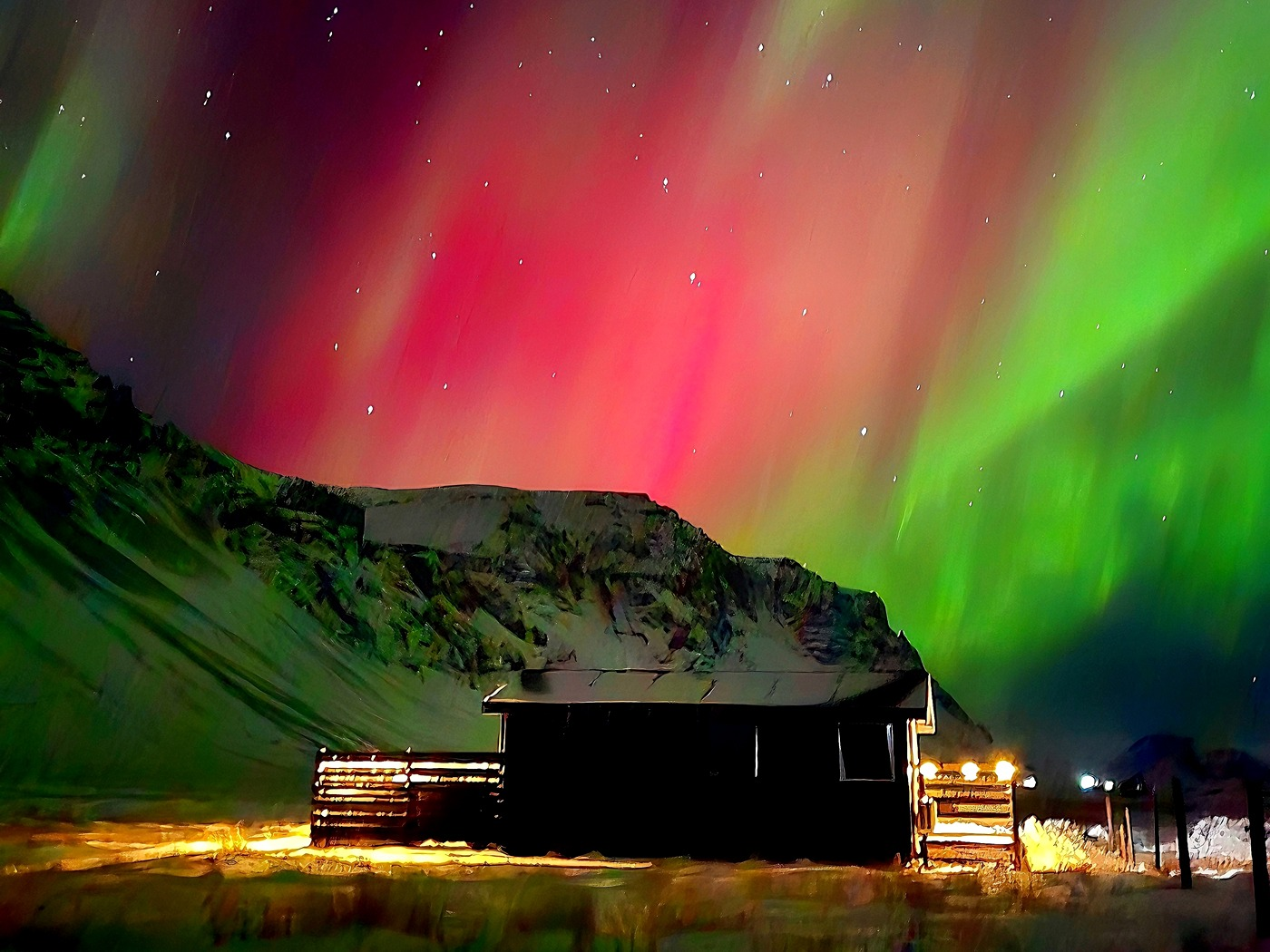 Green Farm Stay se trouve sur une ferme en activité à Eyjafjoll, dans le sud de l’Islande, où les visiteurs peuvent rencontrer des moutons et des chevaux amicaux et profiter du calme de la campagne. Son emplacement, loin des lumières de la ville, en fait l’un des meilleurs endroits d’Islande pour observer les aurores boréales en hiver.