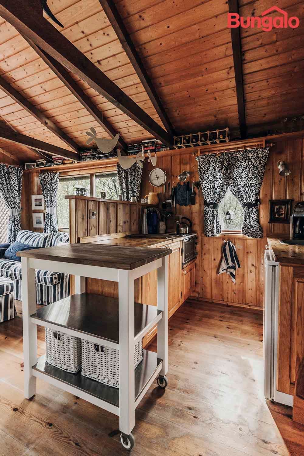 Bien que la cuisine soit petite, elle comprend tous les appareils électroménagers standard, la vaisselle et l'argenterie. La cafetière et la bouilloire permettent aux clients de préparer leurs boissons chaudes préférées après une longue journée de voyage. La maison a une salle de bain avec douche.