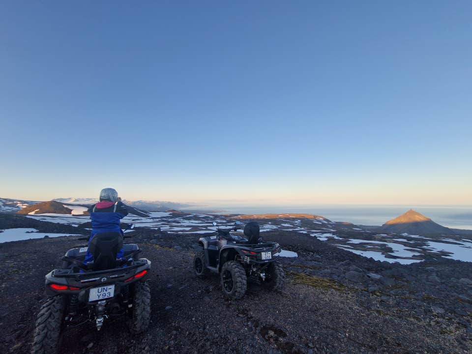 Une fois prêt, vous prendrez la route vers les hauteurs du glacier Snaefellsjokull à bord de votre quad tout-terrain. L’itinéraire, palpitant, vous emmènera hors des sentiers battus à travers des pistes rocailleuses et des passages d’eau.