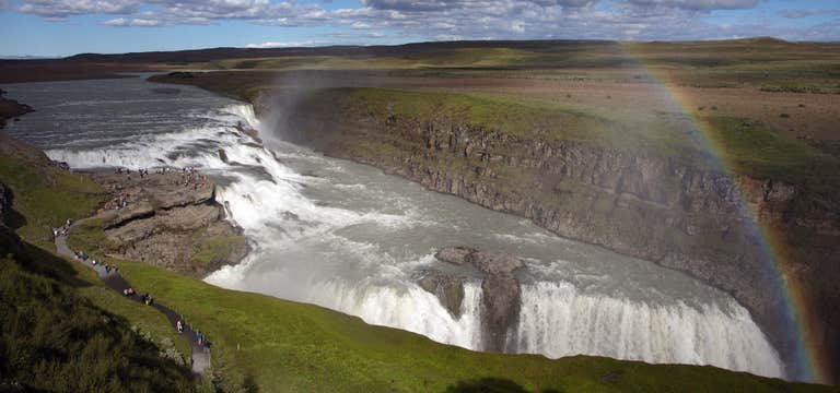Proseguirete verso la maestosa Gullfoss, la Cascata d'Oro, alimentata dallo scioglimento dei ghiacci che scorre nel fiume e si tuffa sulle cascate a due livelli. Potrete ammirare la sua potenza da lontano o percorrere il sentiero che scende direttamente verso le cascate per sentirne il rombo sotto i vostri piedi.